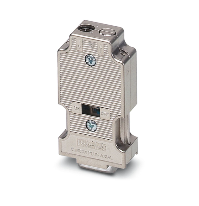 डी-एसयूबी कनेक्टर, 9-पोज., पुरुष कनेक्टर, दो केबल प्रविष्टियों के साथ अक्षीय संस्करण, बस प्रणालीः 12 एमबीपीएस तक प्रोफिस डीपी, समापन प्रतिरोध को स्लाइड स्विच के माध्यम से चालू किया जा सकता है, पिन असाइनमेंटः 3, 5, 6,8; पेंच कनेक्शन टर्मिनल ब्लॉक